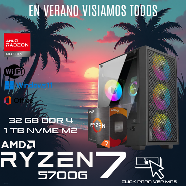 PC GAMER AMD RYZEN 7 5700G DDR4 32GB SSD M.2 1TB + MONITOR 22"