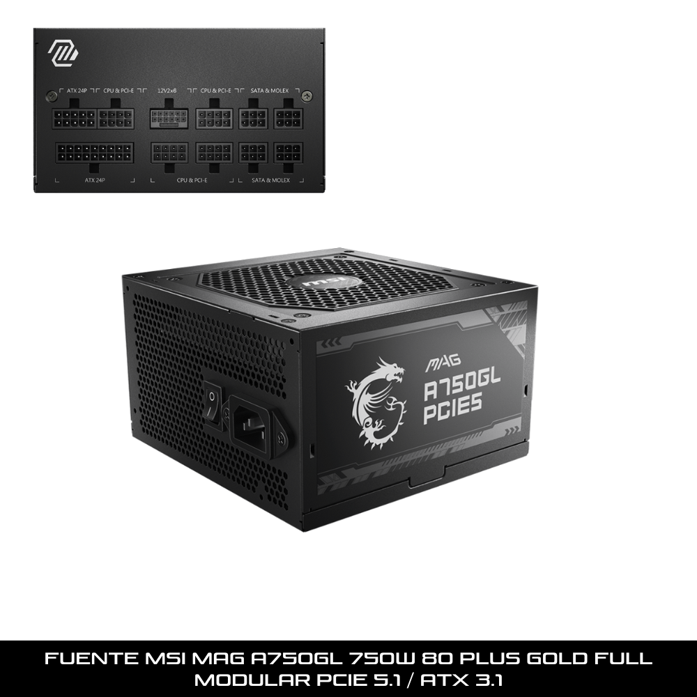 - Fuente MSI MAG A750GL 750W 80 Plus Gold Full Modular PCIE 5.1 / ATX 3.1