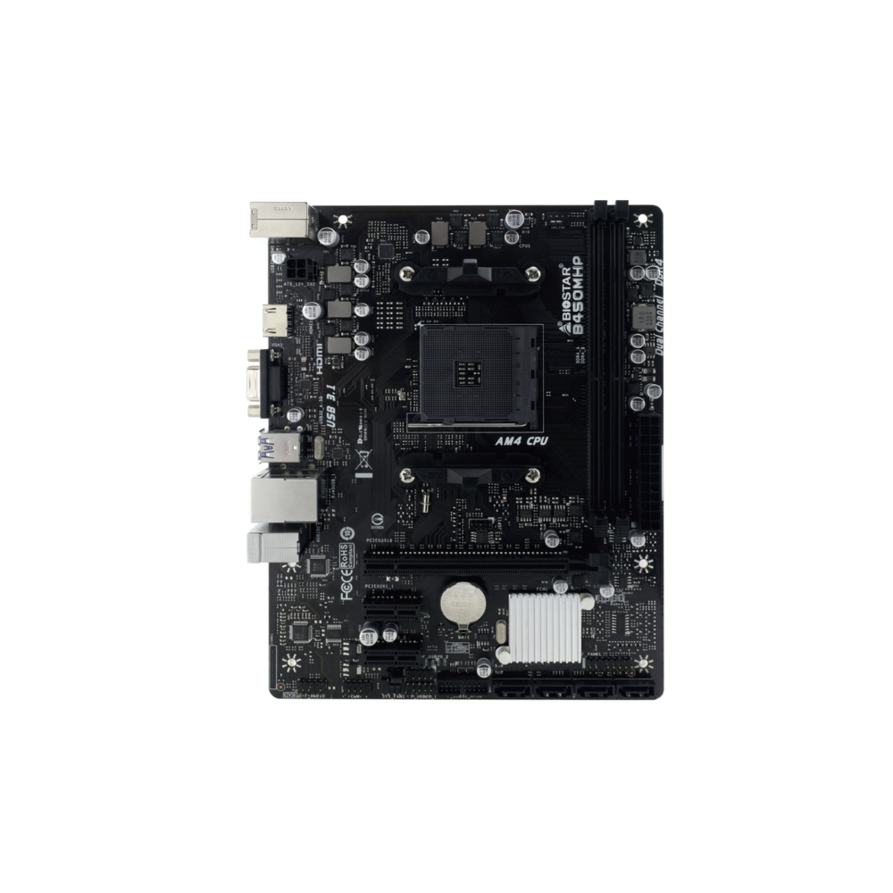 Motherboard Biostar B450MHP para plataforma AMD AM4, orientada a equipos de escritorio de uso general, oficina y gaming. Ofrece compatibilidad con procesadores AMD Ryzen y memorias DDR4, siendo una opción funcional para armados nuevos o actualizaciones dentro del ecosistema AM4.