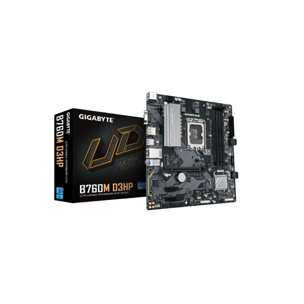 Motherboard Gigabyte con chipset Intel B760, compatible con procesadores Intel de 12ª y 13ª generación. Soporta memorias DDR5 y está pensada para PCs de escritorio actuales que requieren mayor rendimiento y proyección a futuro. Formato Micro-ATX con conectividad moderna y soporte para almacenamiento M.2 NVMe.