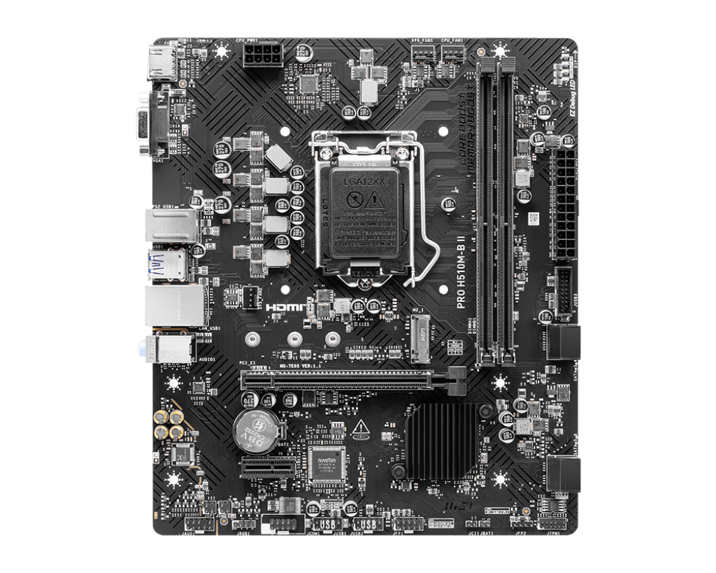 La MSI PRO H510M-B II es una placa madre confiable y funcional, diseñada para procesadores Intel de 10ª y 11ª generación con socket LGA 1200. Con un formato Micro ATX, es ideal para armados compactos de oficina, hogar o tareas generales, ofreciendo estabilidad, compatibilidad y conectividad moderna en una estructura sencilla y bien optimizada.
