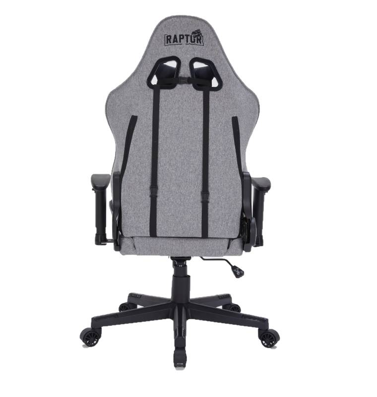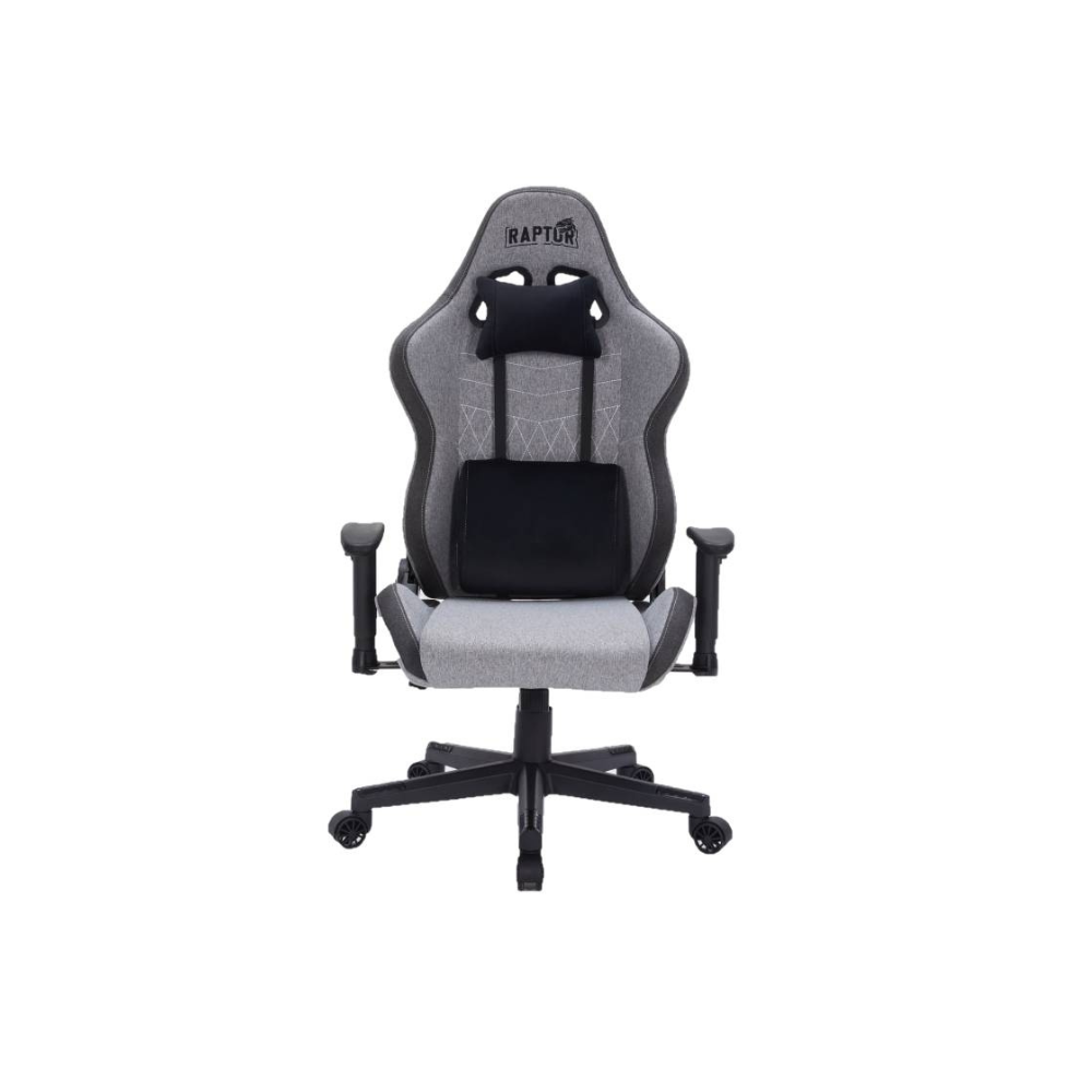 La silla gamer Raptor Throne R1 ofrece diseño ergonómico, estructura robusta y un estilo sobrio en tela gris. Está pensada para largas sesiones de juego o trabajo, brindando máximo confort y soporte.