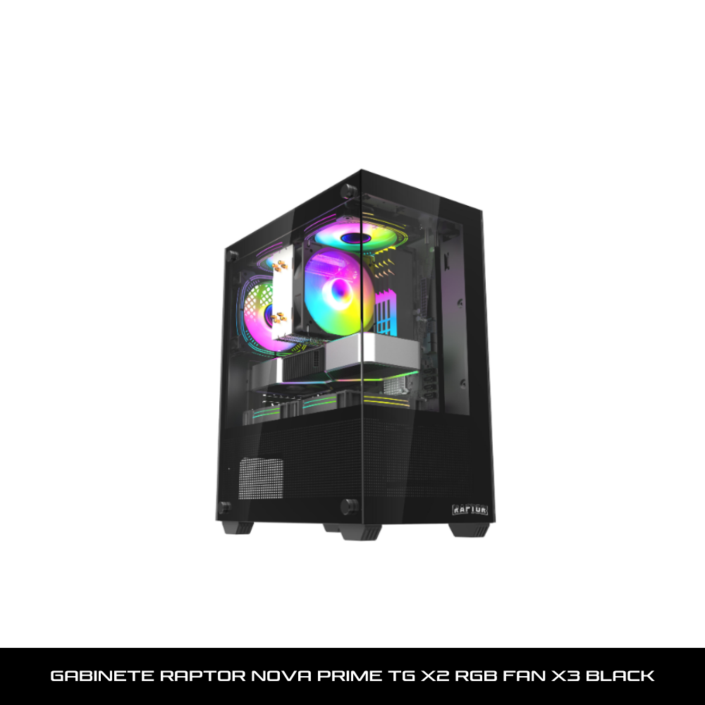 Gabinete Raptor Nova Prime TG x2 Mid-Tower RGB Fan x3 Black
