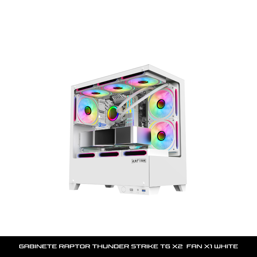 Gabinete Raptor Thunder Strike TG x2 Mid-Tower RGB Fan x1 White