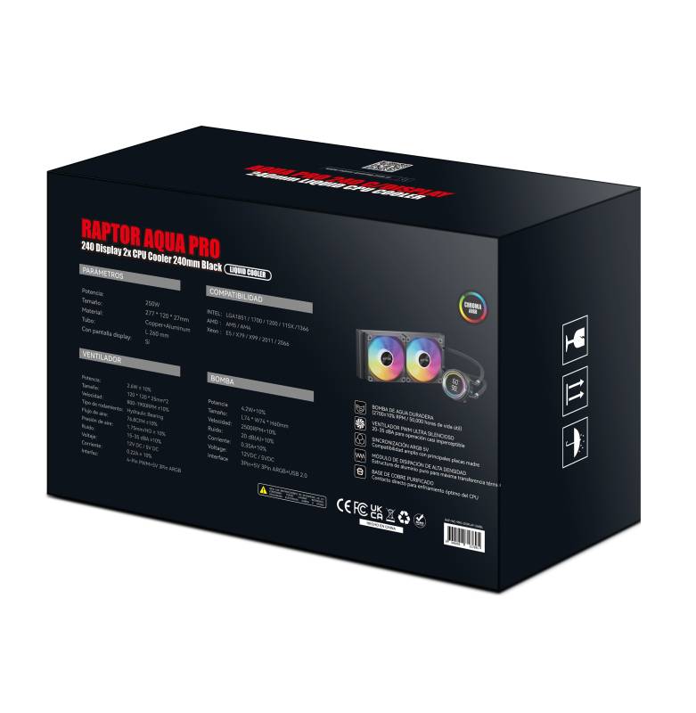 ¡Adquirí ya el water cooling raptor aqua core 240 2x cpu cooler 240mm negro y mantené tu procesador refrigerado con estilo y máxima eficiencia! 💧