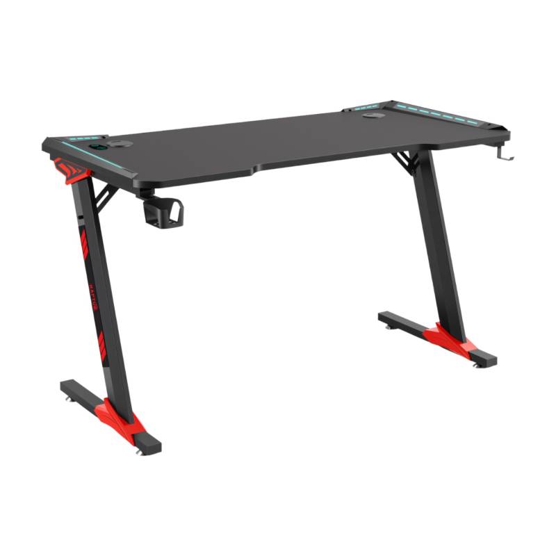 Escritorio gamer con diseño moderno y estructura robusta, pensado para setups exigentes y uso intensivo. Incorpora iluminación RGB alimentada por USB con control táctil, sistema de elevación eléctrica regulable y accesorios funcionales que mejoran la ergonomía y el orden del espacio de trabajo o juego.