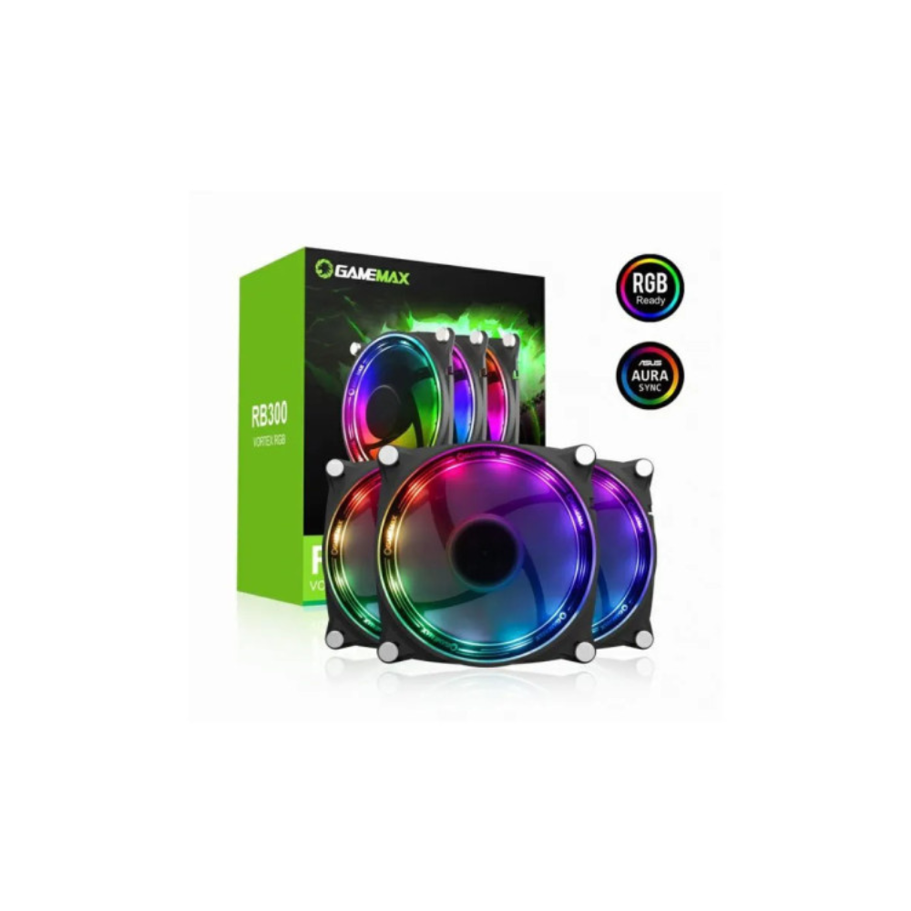 El Kit Gamemax RB300 incluye tres ventiladores ARGB de 120 mm diseñados para mejorar la refrigeración del sistema con un estilo visual impactante. Ideal para gabinetes gamer o setups con panel lateral transparente, este pack ofrece flujo de aire optimizado y una experiencia lumínica personalizable.