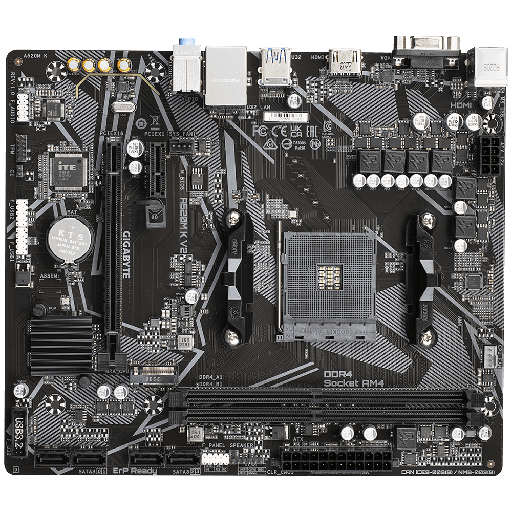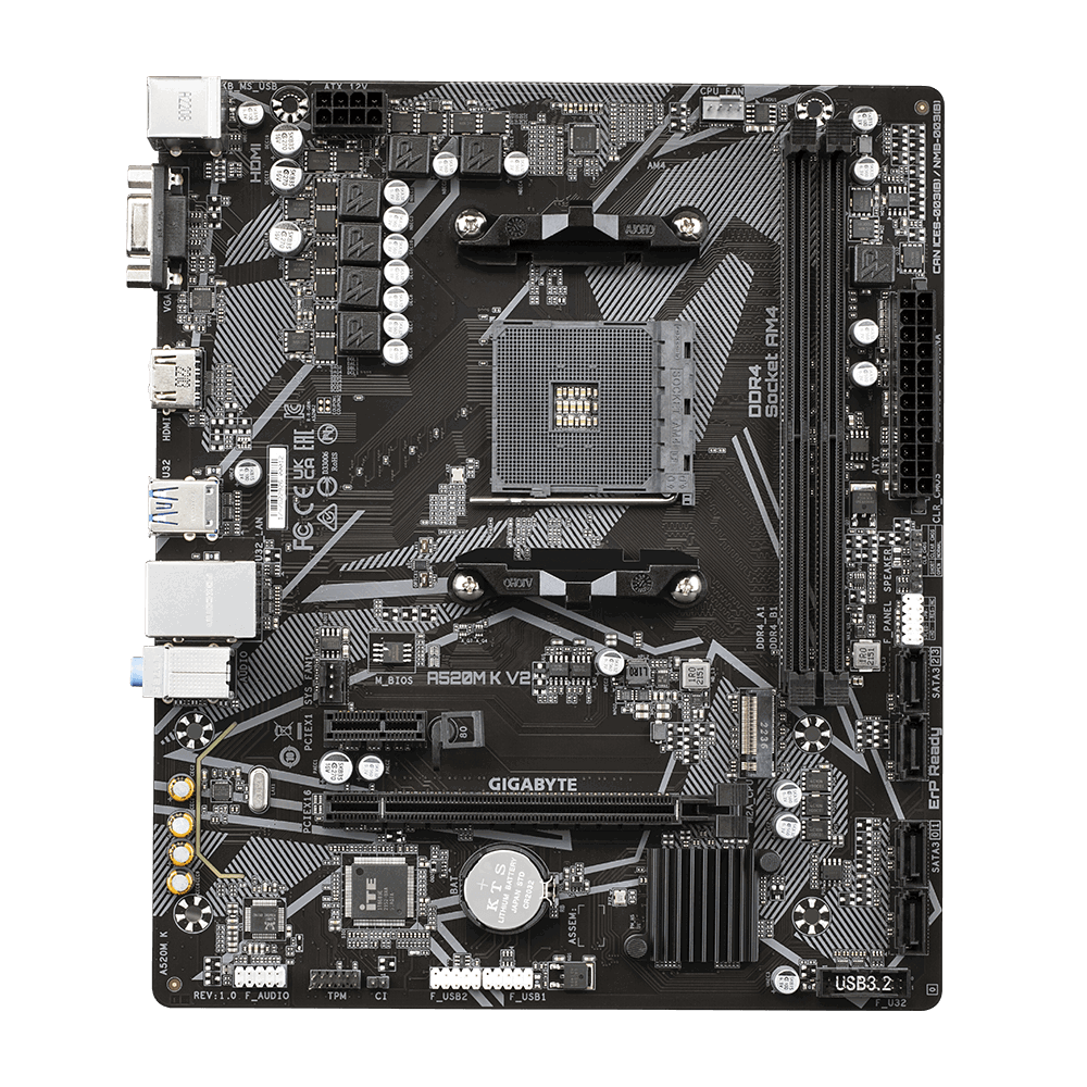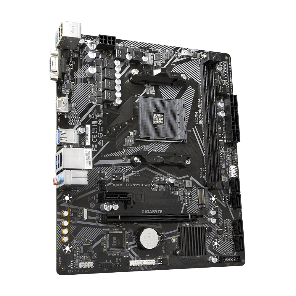 La motherboard Gigabyte A520M K V2 es una opción confiable y eficiente para plataformas AMD con socket AM4. Compatible con procesadores Ryzen de 3ra, 4ta y 5ta generación, ofrece un rendimiento estable y soporte para memorias DDR4 de hasta 4733 MHz (OC).